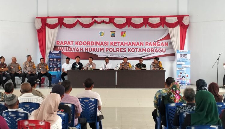bmr.intainews.id, KOTAMOBAGU – Dalam upaya memperkuat ketahanan pangan, Penjabat (Pj) Wali Kota Kotamobagu, Abdullah Mokoginta, bersama jajaran Polres Kotamobagu, menggelar Rapat Koordinasi Ketahanan Pangan di Aula Pemkot Kotamobagu pada Jumat (15/11/2024).
